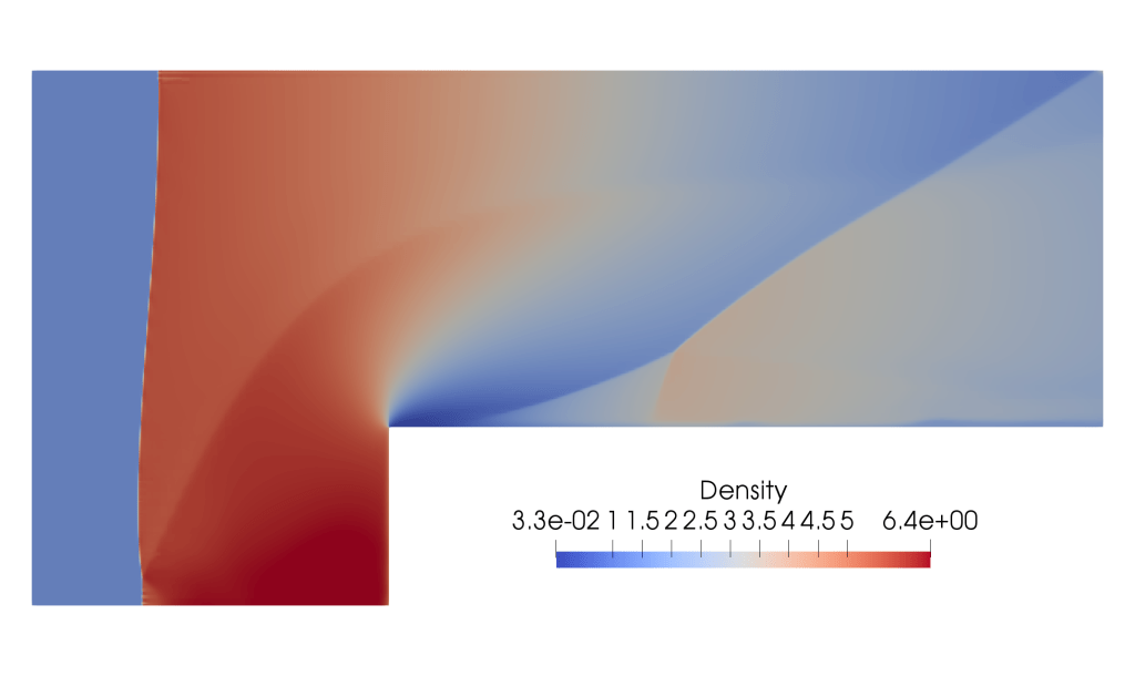 A forward facing step problem at Mach 3.66.