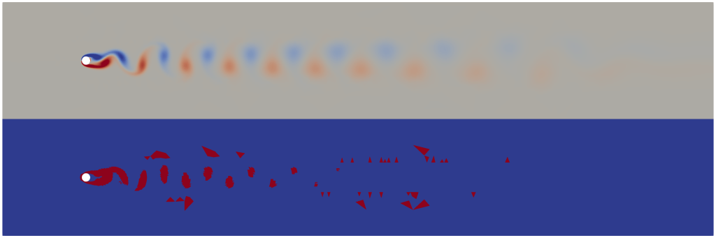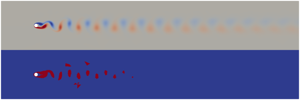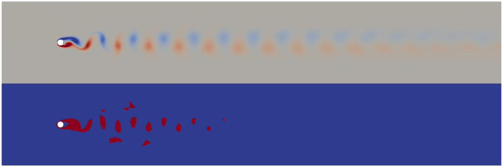 The following examines the use of model adaptivity on the Isothermal Navier-Stokes system in a situation where Karman vortices are produced by a flow over a cylinder.